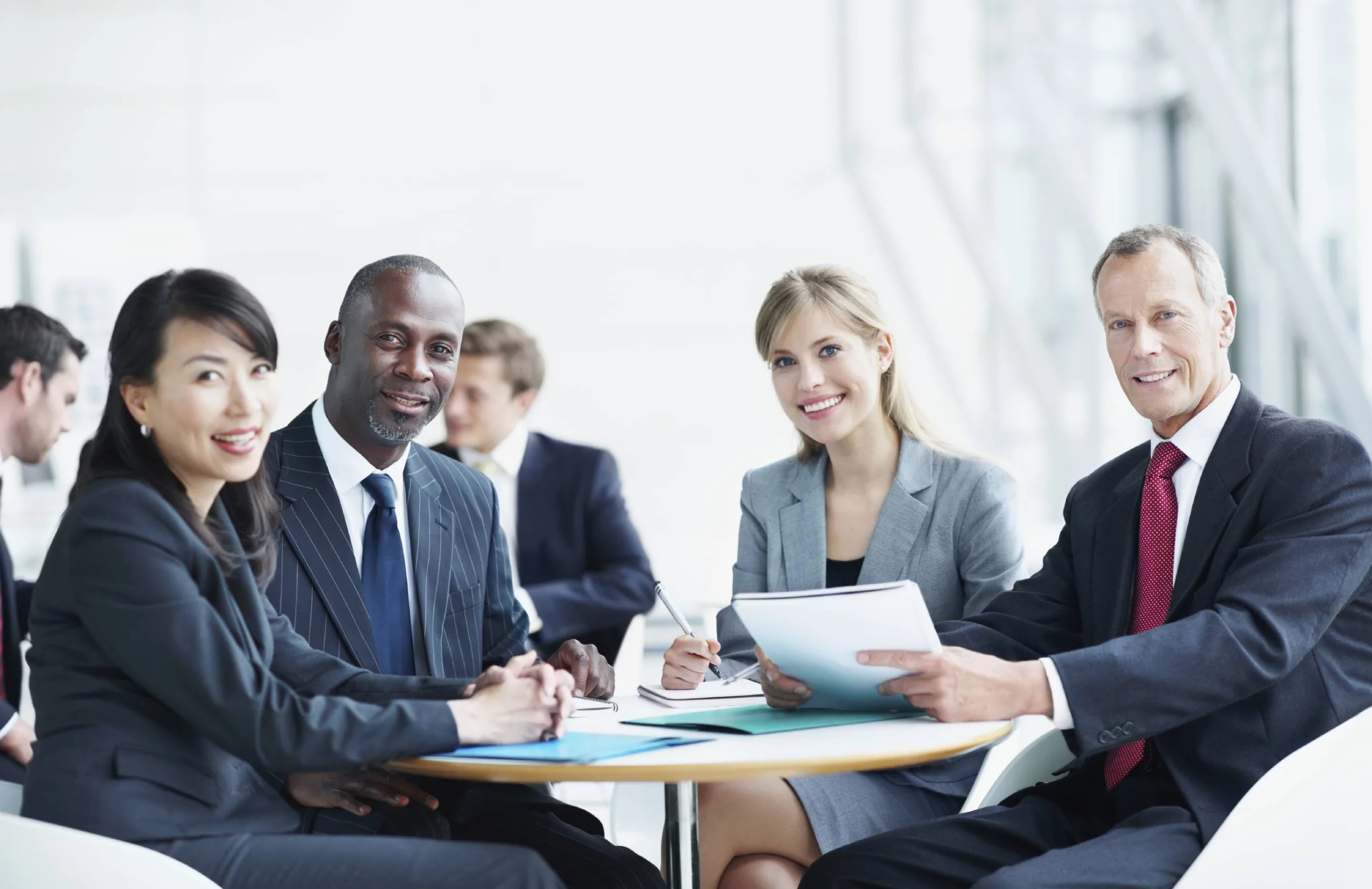 Smiling businesspeople in a meeting together – portrait